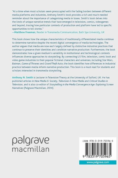 This book shows how the unique characteristics of traditionally differentiated media continue to determine narrative despite the recent digital convergence of media technologies. The author argues that media are now each largely defined by distinctive industrial practices that continue to preserve their identities and condition narrative production. Furthermore, the book demonstrates how a given medium's variability in institutional and technological contexts influences diverse approaches to storytelling. By connecting US film, television, comic book and video game industries to their popular fictional characters and universes; including Star Wars, Batman, Game of Thrones and Grand Theft Auto; the book identifies how differences in industrial practice between media inform narrative production. This book is a must read for students and scholars interested in transmedia storytelling.