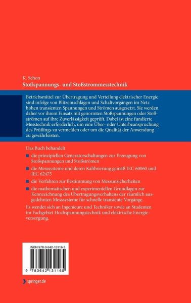 Betriebsmittel zur Übertragung und Verteilung elektrischer Energie sind infolge von Blitzeinschlägen und Schaltvorgängen im Netz hohen transienten Spannungen und Strömen ausgesetzt. Sie werden daher vor ihrem Einsatz mit genormten Stoßspannungen oder Stoßströmen auf ihre Zuverlässigkeit geprüft. Dabei ist eine fundierte Messtechnik erforderlich, um eine Über- oder Unterbeanspruchung des Prüflings zu vermeiden oder um die Qualität der Anwendung zu gewährleisten. Das Buch behandelt - die prinzipiellen Generatorschaltungen zur Erzeugung von Stoßspannungen und Stoßströmen - die Messsysteme und deren Kalibrierung gemäß IEC 60060 und IEC 62475- die Verfahren zur Bestimmung von Messunsicherheiten- die mathematischen und experimentellen Grundlagen zur Kennzeichnung des Übertragungsverhaltens der räumlich ausgedehnten Messsysteme für schnelle transiente Vorgänge. Es wendet sich an Ingenieure und Techniker sowie an Studenten im Fachgebiet Hochspannungstechnik und elektrische Energieversorgung.