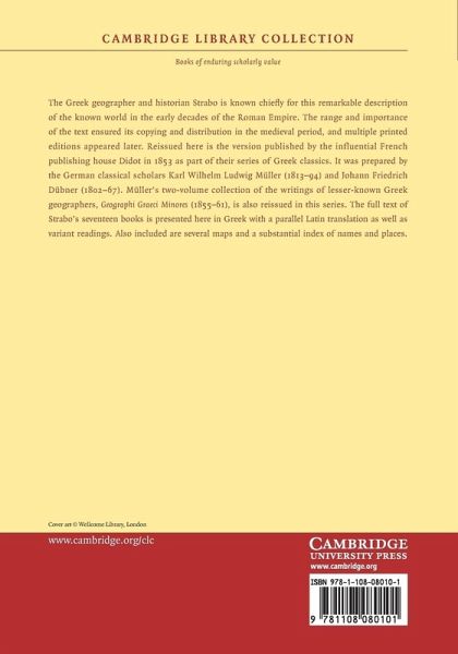 The Greek geographer and historian Strabo is known chiefly for this remarkable description of the known world in the early decades of the Roman Empire. The range and importance of the text ensured its copying and distribution in the medieval period, and multiple printed editions appeared later. Reissued here is the version published by the influential French publishing house Didot in 1853 as part of their series of Greek classics. It was prepared by the German classical scholars Karl Wilhelm Ludwig Müller (1813-94) and Johann Friedrich Dübner (1802-67). Müller's two-volume collection of the writings of lesser-known Greek geographers, Geographi Graeci Minores (1855-61), is also reissued in this series. The full text of Strabo's seventeen books is presented here in Greek with a parallel Latin translation as well as variant readings. Also included are several maps and a substantial index of names and places.