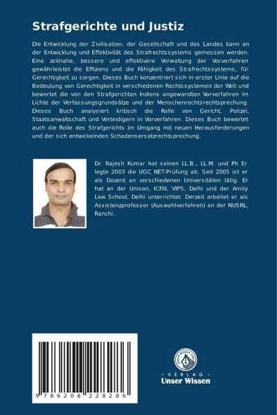 Die Entwicklung der Zivilisation, der Gesellschaft und des Landes kann an der Entwicklung und Effektivität des Strafrechtssystems gemessen werden. Eine zeitnahe, bessere und effektivere Verwaltung der Vorverfahren gewährleistet die Effizienz und die Fähigkeit des Strafrechtssystems, für Gerechtigkeit zu sorgen. Dieses Buch konzentriert sich in erster Linie auf die Bedeutung von Gerechtigkeit in verschiedenen Rechtssystemen der Welt und bewertet die von den Strafgerichten Indiens angewandten Vorverfahren im Lichte der Verfassungsgrundsätze und der Menschenrechtsrechtsprechung. Dieses Buch analysiert kritisch die Rolle von Gericht, Polizei, Staatsanwaltschaft und Verteidigern in Vorverfahren. Dieses Buch bewertet auch die Rolle des Strafgerichts im Umgang mit neuen Herausforderungen und der sich entwickelnden Schadensersatzrechtsprechung.