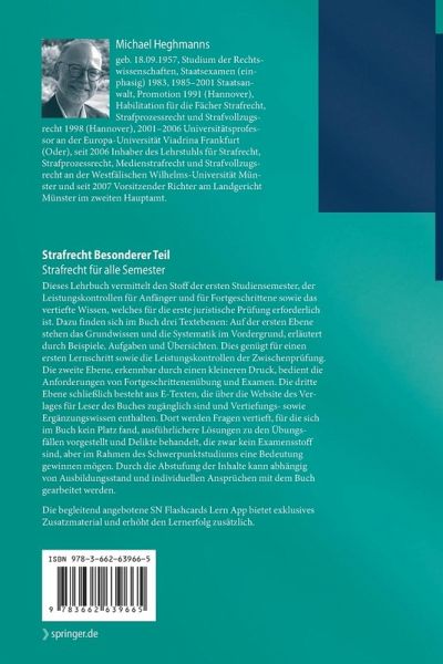 Dieses Lehrbuch vermittelt den Stoff der ersten Studiensemester, der Leistungskontrollen für Anfänger und für Fortgeschrittene sowie das vertiefte Wissen, welches für die erste juristische Prüfung erforderlich ist. Dazu finden sich im Buch drei Textebenen: Auf der ersten Ebene stehen das Grundwissen und die Systematik im Vordergrund, erläutert durch Beispiele, Aufgaben und Übersichten. Dies genügt für einen ersten Lernschritt sowie die Leistungskontrollen der Zwischenprüfung. Die zweite Ebene, erkennbar durch einen kleineren Druck, bedient die Anforderungen von Fortgeschrittenenübung und Examen. Die dritte Ebene schließlich besteht aus E-Texten, die über die Website des Verlages für Leser des Buches zugänglich sind und Vertiefungs- sowie Ergänzungswissen enthalten. Dort werden Fragen vertieft, für die sich im Buch kein Platz fand, ausführlichere Lösungen zu den Übungsfällen vorgestellt und Delikte behandelt, die zwar kein Examensstoff sind, aber im Rahmen des Schwerpunktstudiums eine Bedeutung gewinnen mögen. Durch die Abstufung der Inhalte kann abhängig von Ausbildungsstand und individuellen Ansprüchen mit dem Buch gearbeitet werden.