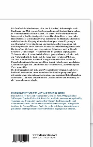 Die Beiträge setzen sich mit dieser Problematik sowohl grundsätzlich wie im Detail auseinander, unter besonderer Berücksichtigung von Opfermitverantwortung einerseits, Anlageberatung und exzessiver Risikoübernahme andererseits. Der Band schließt mit der Diskussion über den Vorschlag für ein Unternehmensstrafrecht.