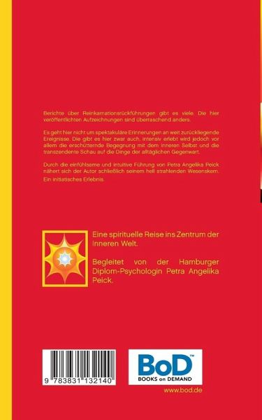 Eine spirituelle Reise ins Zentrum der Inneren Welt, begleitet von der Hamburger Diplom-Psychologin Petra Angelika Peick.Berichte über Reinkarnationsrückführungen gibt es viele. Die hier veröffentlichten Aufzeichnungen sind überraschend anders.Es geht hier nicht um spektakuläre Erinnerungen an weit zurückliegende Ereignisse. Die gibt es hier zwar auch, intensiv erlebt wird jedoch vor allem die erschütternde Begegnung mit dem Inneren Selbst und die transzendente Schau auf die Dinge der alltäglichen Gegenwart.Durch die einfühlsame und intuitive Führung von Petra Angelika Peick nähert sich der Autor schließlich seinem hell strahlenden Wesenskern. Ein initiatisches Erlebnis.
