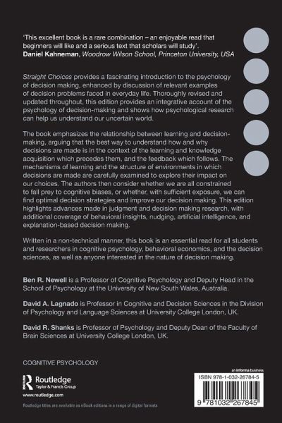 Straight Choices provides a fascinating introduction to the psychology of decision making, enhanced by discussion of relevant examples of decision problems faced in everyday life. Thoroughly revised and updated throughout, this edition provides an integrative account of the psychology of decision-making and shows how psychological research can help us understand our uncertain world.