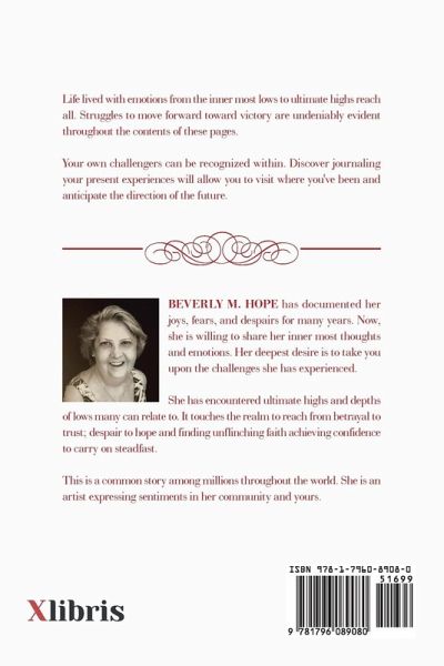 Life lived with emotions from the inner most lows to ultimate highs reach all. Struggles to move forward toward victory are undeniably evident throughout the contents of these pages. Your own challengers can be recognized within. Discover journaling your present experiences will allow you to visit where you've been and anticipate the direction of the future.