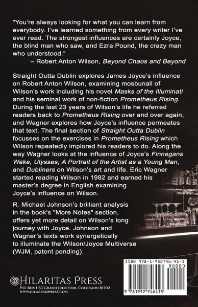 "You're always looking for what you can learn from everybody. I've learned something from every writer I've ever read. The strongest influences are certainly Joyce, the blind man who saw, and Ezra Pound, the crazy man who understood." - Robert Anton Wilson, Beyond Chaos and Beyond Straight Outta Dublin explores James Joyce's influence on Robert Anton Wilson, examining mosbunall of Wilson's work including his novel Masks of the Illuminati and his seminal work of non-fiction Prometheus Rising. During the last 23 years of Wilson's life he referred readers back to Prometheus Rising over and over again, and Wagner explores how Joyce's influence permeates that text. The final section of Straight Outta Dublin focusses on the exercises in Prometheus Rising which Wilson repeatedly implored his readers to do. Along the way Wagner looks at the influence of Joyce's Finnegans Wake, Ulysses, A Portrait of the Artist as a Young Man, and Dubliners on Wilson's art and life. Eric Wagner started reading Wilson in 1982 and earned his master's degree in English examining Joyce's influence on Wilson. R. Michael Johnson's brilliant analysis in the book's "More Notes" section, offers yet more detail on Wilson's long journey with Joyce. Johnson and Wagner's texts work synergetically to illuminate the Wilson/Joyce Multiverse (WJM, patent pending).