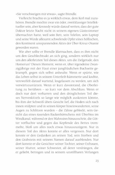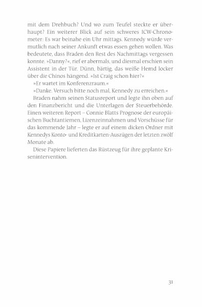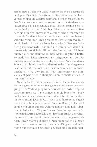 Auflagenstärke in Millionenhöhe beschert. Aber richtig Geld verdient man nicht mit dem Schreiben von…mehrDer erfolgreiche Mittvierziger Kennedy Marr stammt aus Irland und ist in ärmlichen Verhältnissen aufgewachsen. Wie so viele Iren ist er der geborene Geschichtenerzähler, und so beginnt er in jungen Jahren mit dem Schreiben, was ihm schlussendlich eine Nominierung für den Booker Prize und eine Auflagenstärke in Millionenhöhe beschert. Aber richtig Geld verdient man nicht mit dem Schreiben von Romanen sondern im Filmgeschäft, und so verlagert er seinen Wohnsitz nach Los Angeles und schreibt Drehbücher. Sein Bankkonto füllt sich, doch Marr pflegt einen aufwendigen Lebensstil mit Sex und Suff und jeder Menge Rock’n’Roll. Kein Wunder, dass die Honorare kurz nach Eingang schon wieder weg sind und er ständig unter Geldknappheit leidet.