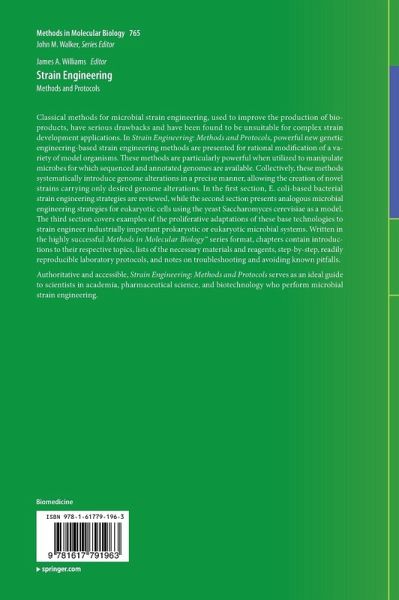 Authoritative and accessible, Strain Engineering: Methods and Protocols serves as an ideal guide to scientists in academia, pharmaceutical science, and biotechnology who perform microbial strain engineering.