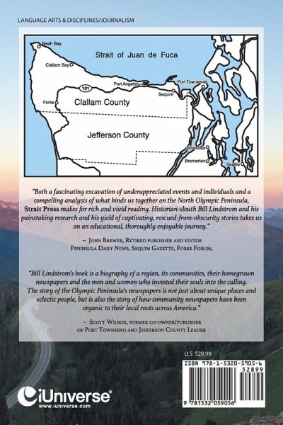 No author has attempted to write the history of all the newspapers on the North Olympic Peninsula-until now. Strait Press: A History of the News Media on the North Olympic Peninsula does that. There have been books that detailed the newspaper history in Clallam County, and two books covered the media history in Jefferson County. Now Strait Press encompasses both counties. This book is about not only newspapers but also radio stations and even television. The reader will learn which president came to Port Angeles in 1937 and was instrumental in establishing Olympic National Park. Creating that park was perhaps the most divisive issue in the history of the Port Angeles newspapers. You will discover why. Learn which newspaper owner in Sequim arrived and vowed to run the Sequim Press out of town and did it. Find out what well-known author spent a night in a Port Townsend jail on his way back from gold panning in the Klondike. In Forks, the reader will learn which newspaper owner became part of a quad marriage in which four sisters were wed in the same ceremony. The history of each area is discussed. Learn about mastodons, the Great Blowdown, devastating fires, oil spills, and how each paper handled 9/11. And whenever possible, the author infuses the discussion with humorous anecdotes. So pull up a chair and start your education of North Olympic news media.