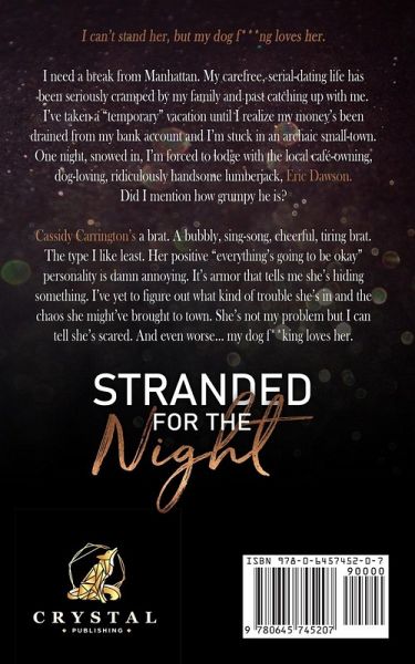 I can't stand her, but my dog f***ng loves her. I need a break from Manhattan. My carefree, serial-dating life has been seriously cramped by my family and past catching up with me. I've taken a "temporary" vacation until I realize my money's been drained from my bank account and I'm stuck in an archaic small-town. One night, snowed in, I'm forced to lodge with the local café-owning, dog-loving, ridiculously handsome lumberjack, Eric Dawson. Did I mention how grumpy he is? Cassidy Carrington's a brat. A bubbly, sing-song, cheerful, tiring brat. The type I like least. Her positive "everything's going to be okay" personality is damn annoying. It's armor that tells me she's hiding something. I've yet to figure out what kind of trouble she's in and the chaos she might've brought to town. She's not my problem but I can tell she's scared. And even worse... my dog f**king loves her.