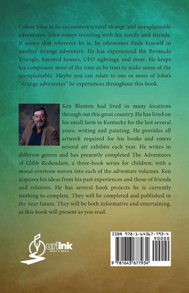 Follow John as he encounters several strange and unexplainable adventures. John enjoys traveling with his family and friends. It seems that wherever he is, he oftentimes finds himself in another strange adventure. He has experienced the Bermuda Triangle, haunted houses, UFO sightings, and more. He keeps his composure most of the time as he tries to make sense of the unexplainable. Maybe you can relate to one or more of John’s "strange adventures" he experiences throughout this book.