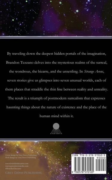 By traveling down the deepest hidden portals of the imagination, Brandon Tezzano delves into the mysterious realms of the surreal, the wondrous, the bizarre, and the unsettling. In Strange Aeons, seven stories give us glimpses into seven unusual worlds, each of them places that straddle the thin line between reality and unreality. The result is a triumph of postmodern surrealism that expresses haunting things about the nature of existence and the place of the human mind within it.