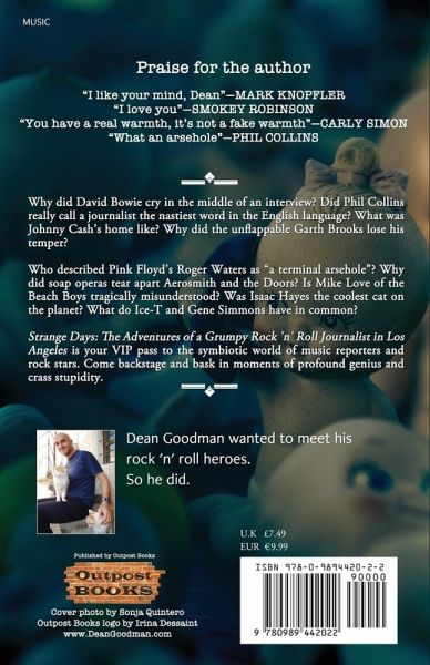 Los Angeles music journalist Dean Goodman sneaks you backstage to hang with righteous reporters, paranoid publicists, and surly stars. "Strange Days" documents unusual encounters with 22 musicians and bands, from a tearful David Bowie and a gloomy Michael Hutchence, to warring members of the Doors, Aerosmith, Guns N' Roses and Lynyrd Skynyrd