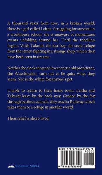 A thousand years from now, in a broken world, there is a girl called Leitha. Struggling for survival in a workhouse school, she is unaware of momentous events unfolding around her. Until the rebellion begins. With Takeshi, the lost boy, she seeks refuge from the street-fighting in a strange shop, which they have both seen in dreams. Neither the clock shop nor its eccentric old proprietor, the Watchmaker, turn out to be quite what they seem. Nor is the white fox anyone's pet. Unable to return to their home town, Leitha and Takeshi leave by the back way. Guided by the fox through perilous tunnels, they reach a Railway which takes them to a refuge in another world. Their relief is short-lived.
