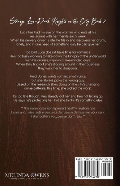 Luca has had his eye on the woman who eats at his restaurant with her friends each week. When his delivery driver is late, he fills in and discovers her drunk, lonely, and in dire need of something only he can give her. Too bad Luca doesn't have time for romance. He's too busy working to take down the kingpin of the underworld, with his cronies, a group of like-minded guys. When they find out she's digging around in their business, they want her to disappear. Heidi Jones wants romance with Luca, but she always picks the wrong guy. Based on the research she's doing on the city's changing crime patterns, this time, she picked the worst. It's too late, though. He's already got her and he's not letting go. He says he's protecting her, but she thinks it's something else.
