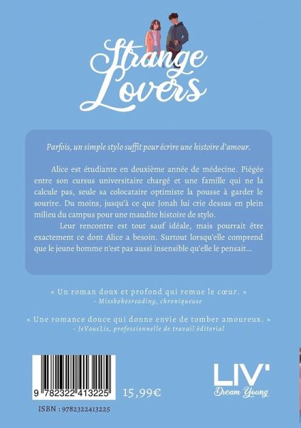« Une romance douce et touchante. »- Sophie Tremblay, auteure de « Un Noël presque noir »« Un roman doux et profond qui remue le coeur. »- Misskokosreadings, chroniqueuse« Une romance toute douce qui donne envie de tomber amoureux. »- JeVousLis, professionnelle de l éditionParfois, un simple stylo suffit pour écrire une histoire d amour.Alice est étudiante en deuxième année de médecine. Piégée entre son cursus universitaire et une famille qui ne la calcule pas, seule sa colocataire optimiste la pousse à garder le sourire. Du moins, jusqu à ce que Jonah lui crie dessus en plein milieu du campus pour une maudite histoire de stylo.Leur rencontre est tout sauf idéale, mais pourrait être exactement ce dont Alice a besoin. Surtout lorsqu elle comprend que le jeune homme n est pas aussi insensible qu elle le pensait.Ce roman est fait pour les personnes qui ont besoin de douceur dans leur vie. Et pour celles qui ne savent pas encore qu elles en ont besoin.