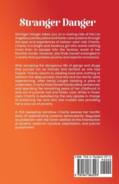 Stranger Danger takes you on a riveting ride of the Los Angeles juvenile justice and foster care systems through the eyes and experiences of sixteen-year-old, Charity. Charity is a bright and studious girl who wants nothing more than to escape into the fantasy world of her favorite novels. However, she finds herself entangled in a reality that punishes poverty and exploits innocence. After escaping the dangerous life of gangs and drugs that proved not as friendly and familial as she had hoped, Charity resorts to stealing food and clothing to address the deep poverty that she and her family were experiencing. After being caught stealing a pack of underwear, Charity finds herself handcuffed, sentenced, and spending the remaining years of her childhood in and out of juvenile hall and foster care. While in foster care, Charity is exploited by the very people in charge of protecting her and who she trusted was providing her a way out of poverty. In this sweeping narrative, Charity weaves her horrific story of experiencing systems benevolently disguised as protection with the harsh realities at the intersection of poverty, systemic injustice, exploitation, and judicial punishment.