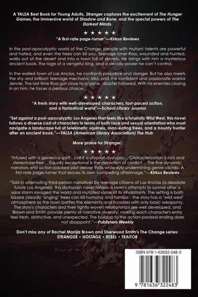 A YALSA Best Book for Young Adults, Stranger captures the excitement of The Hunger Games, the immersive world of Shadow and Bone, and the special powers of The Darkest Minds. In the post-apocalyptic world of the Change, people with mutant talents are powerful and hated, and even the trees can kill you. Teenage loner Ross, wounded and hunted, walks out of the desert and into a town full of secrets. He brings with him a mysterious ancient book, the rage of a vengeful king, and a deadly power he can't control. In the walled town of Las Anclas, he confronts prejudice and danger. But he also meets the shy and brilliant teenage mechanic Mia, and the confident and passionate warrior Jennie. The last time Ross got close to anyone, disaster followed. With his enemies closing in on him, he faces a perilous choice...