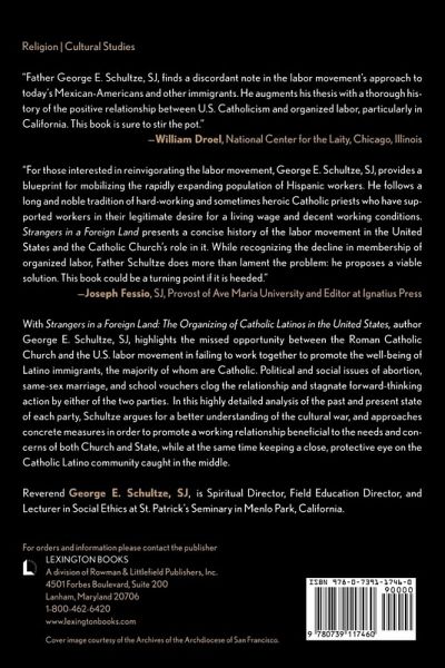The Roman Catholic Church and the U.S. labor movement are missing an opportunity to work together to promote the well-being of Latino immigrants, the majority of whom are Catholic. The relationship between the Church and labor has stagnated because the U.S. labor movement (not unlike the Democrat Party) is taking political and social positions on abortion, same sex marriage, and school vouchers that are inimical to Catholic thinking despite the fact that the Church and Latinos immigrants are culturally conservative. Strangers in a Foriegn Land: The Organizing of Catholic Latinos in the U.S. argues that labor groups would enjoy a better relationship with a natural institutional ally by taking no position on these culture war positions. Author George Schultze also takes the position that the Catholic Church should should be taking steps to promote worker-owned cooperatives in the Mondrag-n Cooperative Corporation tradition, which recognizes the beneficial role of free market economies.