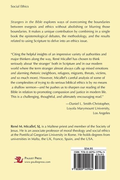 Strangers in the Bible explores ways of overcoming the boundaries between exegesis and ethics without abolishing or blurring those boundaries. It makes a unique contribution by combining in a single book the epistemological debates, the methodology, and the results related to using Scripture to delve into an ethics issue. "Citing the helpful insights of an impressive variety of authorities and major thinkers along the way, René Micallef has chosen to think seriously about 'the stranger' both in Scripture and in our modern world where the term stranger almost always calls up mixed emotions and alarming rhetoric (neighbors, refugees, migrants, threats, victims, and so much more). However, Micallef's careful analysis of some of the complexities of trying to do serious biblical ethics is by no means a shallow sermon-and he pushes us to sharpen our reading of the Bible in relation to promoting compassion and justice in modern life. This is a challenging, thoughtful, and ultimately encouraging read." -Daniel L. Smith-Christopher, Loyola Marymount University, Los Angeles