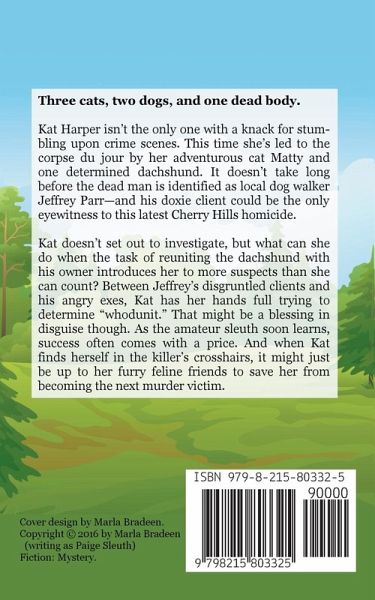 Three cats, two dogs, and one dead body. Kat Harper isn't the only one with a knack for stumbling upon crime scenes. This time she's led to the corpse du jour by her adventurous cat Matty and one determined dachshund. It doesn't take long before the dead man is identified as local dog walker Jeffrey Parr—and his doxie client could be the only eyewitness to this latest Cherry Hills homicide. Kat doesn't set out to investigate, but what can she do when the task of reuniting the dachshund with his owner introduces her to more suspects than she can count? Between Jeffrey's disgruntled clients and his angry exes, Kat has her hands full trying to determine "whodunit." That might be a blessing in disguise though. As the amateur sleuth soon learns, success often comes with a price. And when Kat finds herself in the killer's crosshairs, it might just be up to her furry feline friends to save her from becoming the next murder victim. All of the Cozy Cat Caper Mystery books can be enjoyed as standalones but will be better appreciated as part of the series. The books are light, fun cozy mysteries featuring an animal-loving female amateur sleuth, lovable and not-so-lovable quirky characters, and a page-turning mystery that needs solving. None of the books include cliffhangers, bad language, or graphic scenes.