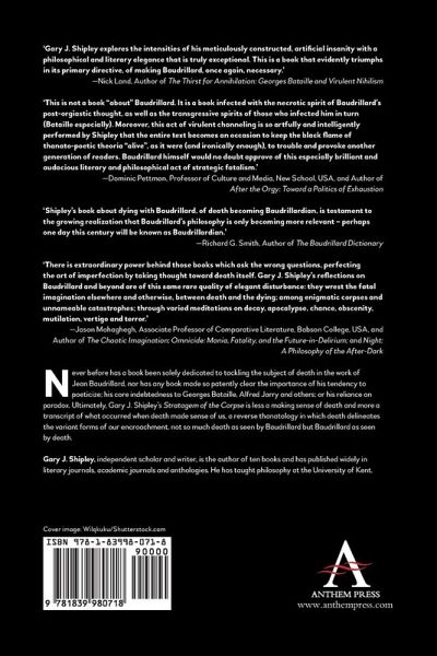 Stratagem of the Corpse is a philosophical and literary exposition of death not so much as seen by Baudrillard but Baudrillard as seen by death.