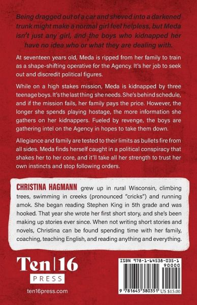 Being dragged out of a car and shoved into a darkened trunk might make a normal girl feel helpless, but Meda isn’t just any girl, and the boys who kidnapped her have no idea who or what they are dealing with. At seventeen years old, Meda is ripped from her family to train as a shape-shifting operative for the Agency. It's her job to seek out and discredit political figures. While on a high stakes mission, Meda is kidnapped by three teenage boys. It’s the last thing she needs. She’s behind schedule, and if the mission fails, her family pays the price. However, the longer she spends playing…mehr
