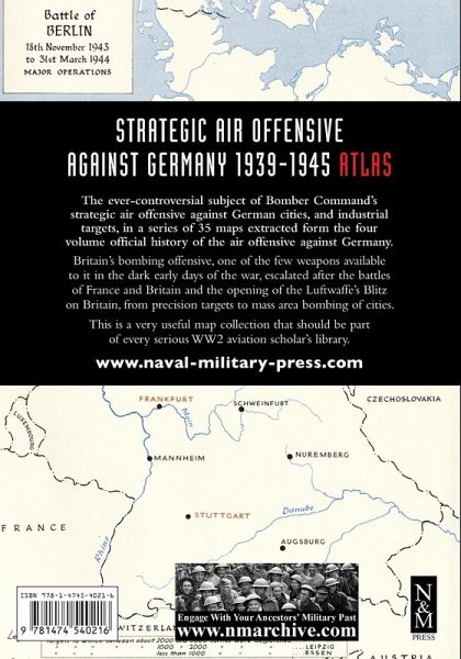 The ever-controversial subject of Bomber Command's strategic air offensive against German cities, and industrial targets, in a series of 35 maps extracted form the four volume official history of the air offensive against Germany. Britain's bombing offensive, one of the few weapons available to it in the dark early days of the war, escalated after the battles of France and Britain and the opening of the Luftwaffe's Blitz on Britain, from precision targets to mass area bombing of cities. This is a very useful map collection that should be part of every serious WW2 aviation scholar's collection.
