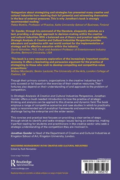 This book introduces strategic management and analysis with a focus on the creative sector. The author organizes sectors of the creative economy into different strategic groups to aid and simplify understanding. The book employs a range of scenarios to practically introduce the concepts and includes a range of case studies that reflect the diverse nature of the creative and cultural industries.