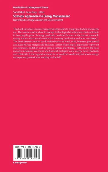This book introduces current managerial approaches to energy production and energy use. The volume analyses how to manage technological developments that contribute to lowering the price of energy production and also focuses on the impact renewable energy sources that provide continuity in energy production and how to manage it. The book presents studies on the effectiveness of wind, solar, biomass, geothermal and hydroelectric energies and discusses current technological approaches to prevent environmental pollution such as carbon capture and storage. Furthermore, the book includes sustainable economic and financial strategies to use energy more effectively and efficiently. It thus appeals not only to an academic readership but also to energy management professionals working in this field.