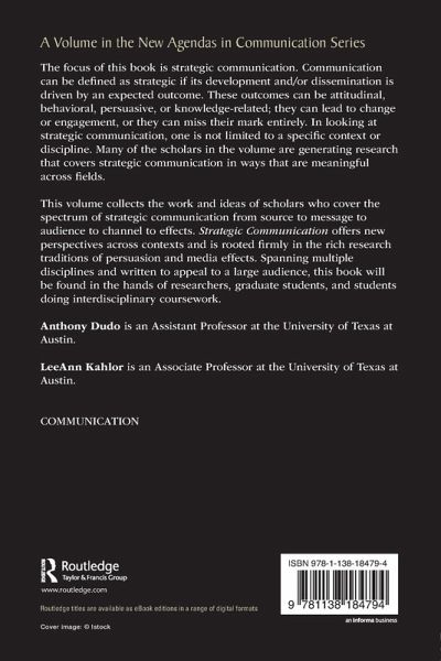 This volume collects the work and idea of scholars who cover the spectrum of strategic communication from source to message to audience to channel to effects. Strategic Communication offers news perspectives across contexts and is rooted firmly in the rich research traditions of persuasion and media effects. Spanning multiple disciplines and written to appeal to a large audience, this book will be found in the hands of researchers, graduate students, and students doing interdisciplinary coursework.