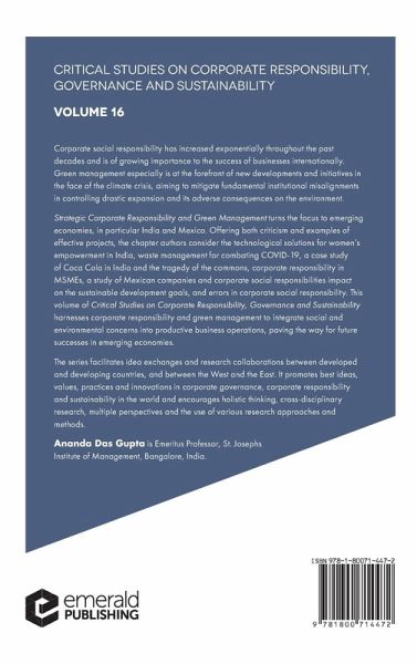 This volume of Critical Studies on Corporate Responsibility, Governance and Sustainability harnesses corporate responsibility and green management to integrate social and environmental concerns into productive business operations, paving the way for future successes in emerging economies.