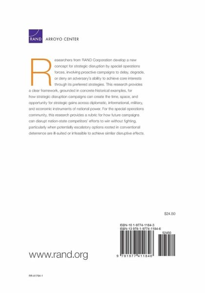Researchers from RAND Corporation develop a new concept for strategic disruption by special operations forces, involving proactive campaigns to delay, degrade, or deny an adversary's ability to achieve core interests through its preferred strategies. This research provides a clear framework, grounded in concrete historical examples, for how strategic disruption campaigns can create the time, space, and opportunity for strategic gains across diplomatic, informational, military, and economic instruments of national power. For the special operations community, this research provides a rubric for how future campaigns can disrupt nation-state competitors' efforts to win without fighting, particularly when potentially escalatory options rooted in conventional deterrence are ill-suited or infeasible to achieve similar disruptive effects.