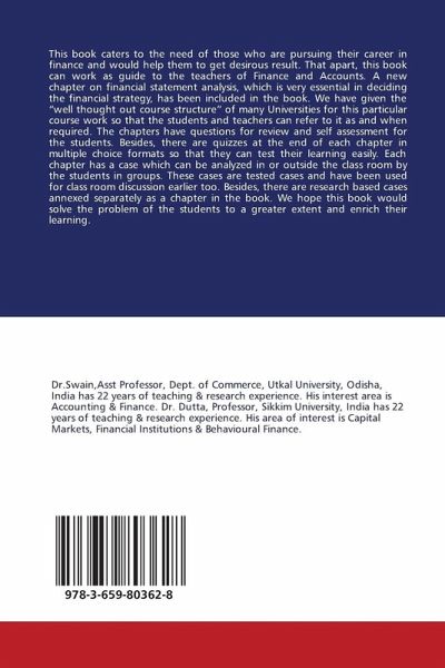 This book caters to the need of those who are pursuing their career in finance and would help them to get desirous result. That apart, this book can work as guide to the teachers of Finance and Accounts. A new chapter on financial statement analysis, which is very essential in deciding the financial strategy, has been included in the book. We have given the "well thought out course structure" of many Universities for this particular course work so that the students and teachers can refer to it as and when required. The chapters have questions for review and self assessment for the students. Besides, there are quizzes at the end of each chapter in multiple choice formats so that they can test their learning easily. Each chapter has a case which can be analyzed in or outside the class room by the students in groups. These cases are tested cases and have been used for class room discussion earlier too. Besides, there are research based cases annexed separately as a chapter in the book. We hope this book would solve the problem of the students to a greater extent and enrich their learning.