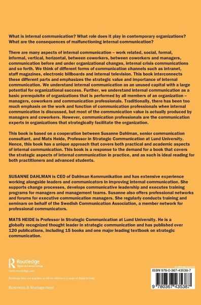 Introduction: the value of internal communication 1. Communicating strategy and change 2. The manager's communicative role 3. The coworker's communicative role 4. The communication professional's role and assignment 5. Digital communication 6. Measuring communication 7. Summary and the way forward