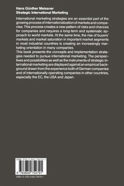International marketing strategies are an essential part of the growing process of internationalization of markets and companies. This process creates a new pattern of risks and chances for companies and requires a long-term and systematic approach to world markets. At the same time, the rise of buyers' markets and market saturation in important market segments in most industrial countries is creating an increasingly marketing orientation in many companies. This book presents the concepts and implementation strategies needed to pursue international marketing. The perspectives and possibilities as well as the instruments of strategic international marketing are displayed against an empirical background drawn from the experience both of German companies and of internationally operating companies in other countries, especially the EC, the USA and Japan.