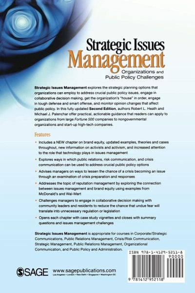By exploring the communication options that organizations can employ in their stewardship to address crucial public policy options and engage in collaborative decision making, Strategic Issues Management gives students practical, actionable guidance. Issues management is vital to an organization's strategic management. It entails understanding and achieving high standards of corporate responsibility by listening to the opinions of key members of the public.