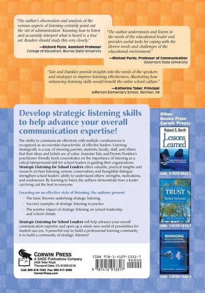 This practitioner friendly book concentrates on the importance of strategic listening as a critical interpersonal skill for school leaders in guiding their organizations.