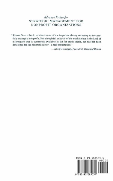Nonprofit organizations in the U.S. earn more than $100 billion annually, and number over a million different organizations. They face increasing competition for donor's dollars and many of the issues they confront are similar to those confronted by for-profit organizations. This book applies powerful concepts of strategic management developed originally in the for-profit sector to the management of nonprofits. It describes the preparation of a strategic plan consistent with the resources available; it analyses the operational tasks in executing the plan; and describes the ways in which nonprofits need to change in order to remain competitive. The book draws clear distinctions between the different challenges encountered by nonprofits operating in different industries. It will be useful for managers in such diverse organizations as the Santa Fe Opera, the Salvation Army, and the National Football League.