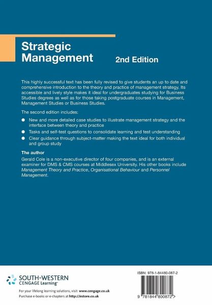 Intended as an introduction to the theory and practice of strategic management, this book aims to enable the reader to identify and make connections between the key features and the issues and choices that arise from them. The text is aimed at BA Business Studies but is expected to be used on ACCA (Management and strategy) and CIMA (Strategic Management Accountancy and Marketing). It is also suitable for students on postgraduate courses in management or business studies including the Diploma in Management Studies and introductory stages of MBA courses.