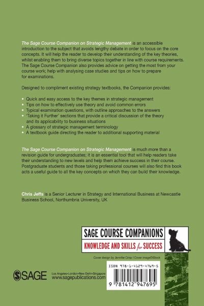 The Sage Course Companion on Strategic Management is an accessible introduction to the subject that avoids lengthy debate in order to focus on the core concepts. It will help the reader to develop their understanding of the key theories, whilst enabling them to bring diverse topics together in line with course requirements. The Sage Course Companion also provides advice on getting the most from your course work; help with analysing case studies and tips on how to prepare for examinations. Designed to compliment existing strategy textbooks, the Companion provides: - Quick and easy access to the key themes in strategic management - Tips on how to effectively use theory and avoid common errors - Typical examination questions, with outline approaches to the answers - 'Taking it Further' sections that provide a critical discussion of the theory and its applicability to business situations - A glossary of strategic management terminology - A textbook guide directing the reader to additional supporting material The Sage Course Companion on Strategic Management is much more than a revision guide for undergraduates; it is an essential tool that will help readers take their understanding to new levels and help them achieve success in their course. Postgraduate students and those taking professional courses will also find this book acts a us.