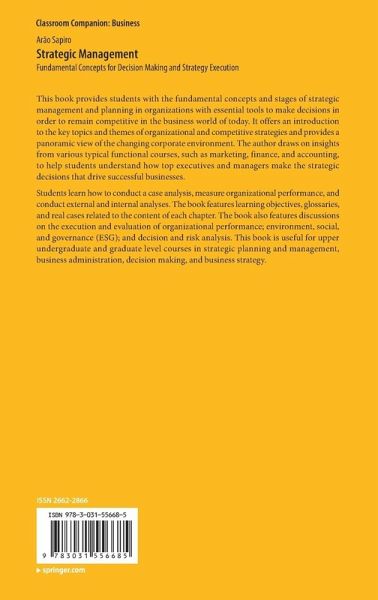 Students learn how to conduct a case analysis, measure organizational performance, and conduct external and internal analyses. The book features learning objectives, glossaries, and real cases related to the content of each chapter. The book also features discussions on the execution and evaluation of organizational performance; environment,social, and governance (ESG); and decision and risk analysis. This book is useful for upper undergraduate and graduate level courses in strategic planning and management, business administration, decision making, and business strategy.