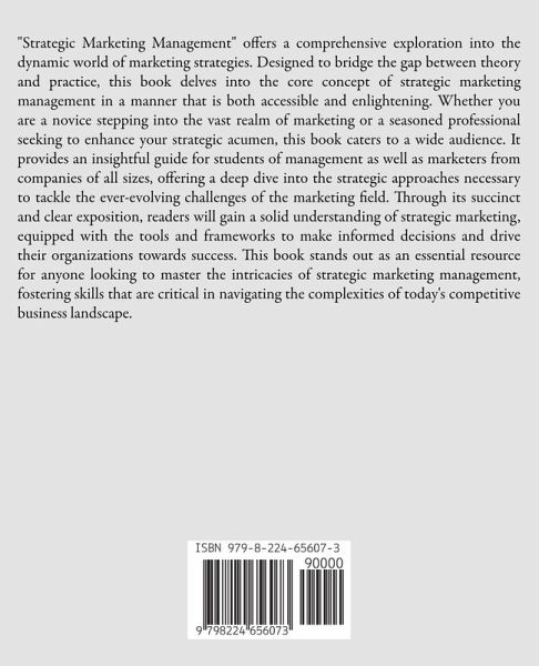 "Strategic Marketing Management" offers a comprehensive exploration into the dynamic world of marketing strategies. Designed to bridge the gap between theory and practice, this book delves into the core concept of strategic marketing management in a manner that is both accessible and enlightening. Whether you are a novice stepping into the vast realm of marketing or a seasoned professional seeking to enhance your strategic acumen, this book caters to a wide audience. It provides an insightful guide for students of management as well as marketers from companies of all sizes, offering a deep dive into the strategic approaches necessary to tackle the ever-evolving challenges of the marketing field. Through its succinct and clear exposition, readers will gain a solid understanding of strategic marketing, equipped with the tools and frameworks to make informed decisions and drive their organizations towards success. This book stands out as an essential resource for anyone looking to master the intricacies of strategic marketing management, fostering skills that are critical in navigating the complexities of today's competitive business landscape.