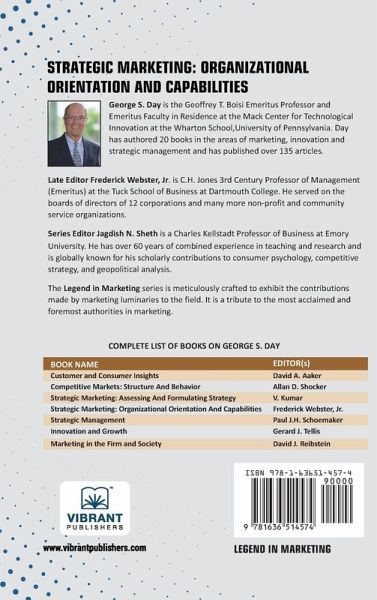 Strategic Marketing: Organizational Orientation and Capabilities by George S. Day examines how internal organizational factors influence the success of marketing strategies. This book brings together pivotal research that highlights the importance of market orientation, internal capabilities, and cross-functional alignment in driving sustained competitive advantage. Day emphasizes how an organization's culture, systems, and processes impact its ability to anticipate market needs, respond effectively to change, and build long-term value. Topics include marketing capability development, organizational learning, responsiveness, and the role of leadership in shaping marketing performance. Blending theory with practical insight, the book provides valuable tools for identifying and nurturing the strategic capabilities that make marketing more adaptive and impactful. Whether you're a business scholar, CMO, or marketing strategist, this book will deepen your understanding of what it takes to embed marketing excellence into the core of an organization. As part of the Legend in Marketing series, this collection captures the enduring impact of George Day's scholarship on marketing capability-building.