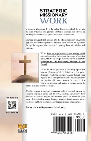 In Strategic Missionary Work, the author, Theodore Andoseh delves into the core principles and practical strategies essential for success in fulfilling the divine call to spread the Gospel to the nations. Drawing from profound insights into the life and ministry of Apostle Paul and real-world experience, Andoseh takes readers on a journey through the stages of missionary work, guiding them with wisdom and purpose. With a focus on adapting to the ever-changing world and understanding the unique dynamics of mission fields, this book equips missionaries to effectively communicate the unchanging message of the Gospel. Under the divine guidance of the Holy Spirit, the ultimate Director of God's Missionary Enterprise, Andoseh reveals the timeless wisdom derived from Apostle Paul's strategic endeavors. With authenticity and passion, this book captures the essence of a God-given mission and ignites a burning desire to impact lives and honor God's call. Whether you are a seasoned missionary seeking renewed purpose or someone sensing a divine call to serve, Strategic Missionary Work provides invaluable insights and strategic plans to maximize your impact. It is a timely resource that empowers missionaries to rise above challenges and fulfill their mission with precision and effectiveness. The harvest is waiting-answer the call today.
