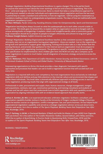 Professionals in sales, procurement and supply chain, human resources, change management, mergers and acquisitions, contracts, start-ups, construction partnering, and training consultants and students of business and law will value a text that understands how to build negotiation skills and capability across the organization by aligning individual skills with an evidence-based approach that actually works.