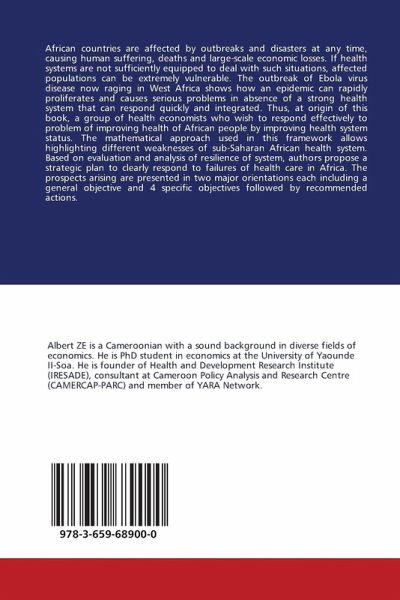 African countries are affected by outbreaks and disasters at any time, causing human suffering, deaths and large-scale economic losses. If health systems are not sufficiently equipped to deal with such situations, affected populations can be extremely vulnerable. The outbreak of Ebola virus disease now raging in West Africa shows how an epidemic can rapidly proliferates and causes serious problems in absence of a strong health system that can respond quickly and integrated. Thus, at origin of this book, a group of health economists who wish to respond effectively to problem of improving health of African people by improving health system status. The mathematical approach used in this framework allows highlighting different weaknesses of sub-Saharan African health system. Based on evaluation and analysis of resilience of system, authors propose a strategic plan to clearly respond to failures of health care in Africa. The prospects arising are presented in two major orientations each including a general objective and 4 specific objectives followed by recommended actions.