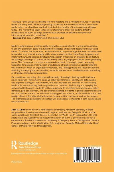 For practitioners of policy, this book offers clarity of strategic thinking and introduces a new framework with which to perceive policy environments, identify and define goals, and organize strategies. For students, this book explores the skill and art in exercising leadership, encompassing both pragmatism and idealism. By learning and applying the showcased techniques, students will be equipped with a heightened awareness of policy domains, goal construction, and operational planning. Students in public-sector studies will find this book of interest, as will those studying political science, public administration, law, foreign affairs, international development, history, military sciences, and similar majors. The organizational perspective in strategy will also appeal to students in both business and non-profit sectors.