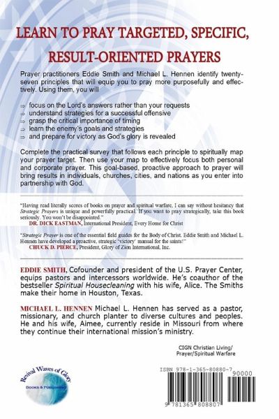 Learn to Pray Targeted, Specific, Result-Oriented Prayers Prayer practitioners Eddie Smith and Michael L. Hennen identify twenty-seven principles that will equip you to pray more purposefully and effectively. Using them, you will focus on the Lord's answers rather than your requests understand strategies for a successful offensive grasp the critical importance of timing learn the enemy's goals and strategies and prepare for victory as God's glory is revealed Complete the practical survey that follows each principle to spiritually map your prayer target. Then use your map to effectively focus both personal and corporate prayer. This goal-based, proactive approach to prayer will bring results in individuals, churches, cities, and nations as you enter into partnership with God.