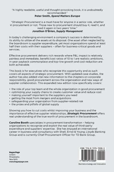 A company's success is determined by its ability to utilize all its assets. Yet two assets often neglected by the boardroom are the amount it spends on goods and services and the expertise of the organisation's key suppliers. This highly accessible book will help you understand how to tap into these assets to secure competitive advantage. With application to organisations in all industries internationally, Strategic Procurement details why procurement is critical to successful business performance. It explores the strategic value of procurement to business and the potential for significant cost savings through maximising value from suppliers and third-party spend. A lot has changed in the world of strategic procurement. While many developments have served to reinforce the business value of good procurement practices, there are many risks associated with poor procurement. On the upside, procurement's role has increased in many recent mega-mergers. On the downside, there are glaring examples of supply continuity issues triggered by natural disasters; reputational issues related to supply chains of companies like BP and Apple; and the inadvertent role played by suppliers as the weakest link in cyber-crime. This second edition of Strategic Procurement has been thoroughly updated to reflect these developments. Besides real-life case studies, there is a new chapter on procurement's role in delivering successful mergers and acquisitions as well as three new chapters exploring the mitigants to a variety of supplier-related risks. Additionally, there are expanded sections on corporate responsibility, procurement proficiency, good procurement across the organisation, and new ways of supplier collaboration.